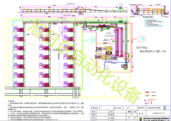 此方案為車間內21臺生產設備只需要1人看管,1人放紙箱及轉運碼好垛的成品成品即可,由以前的15人減少到了兩人,極大的節(jié)省了人工成本。本方案實現(xiàn)了紙箱自動開箱封底、自動箱內套袋、空箱按機臺要箱指令自動貼標、自動送至指定機臺。裝好產品...